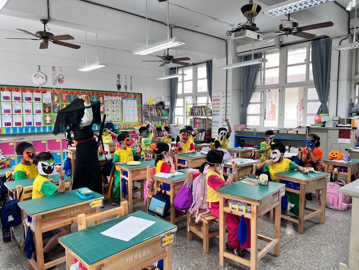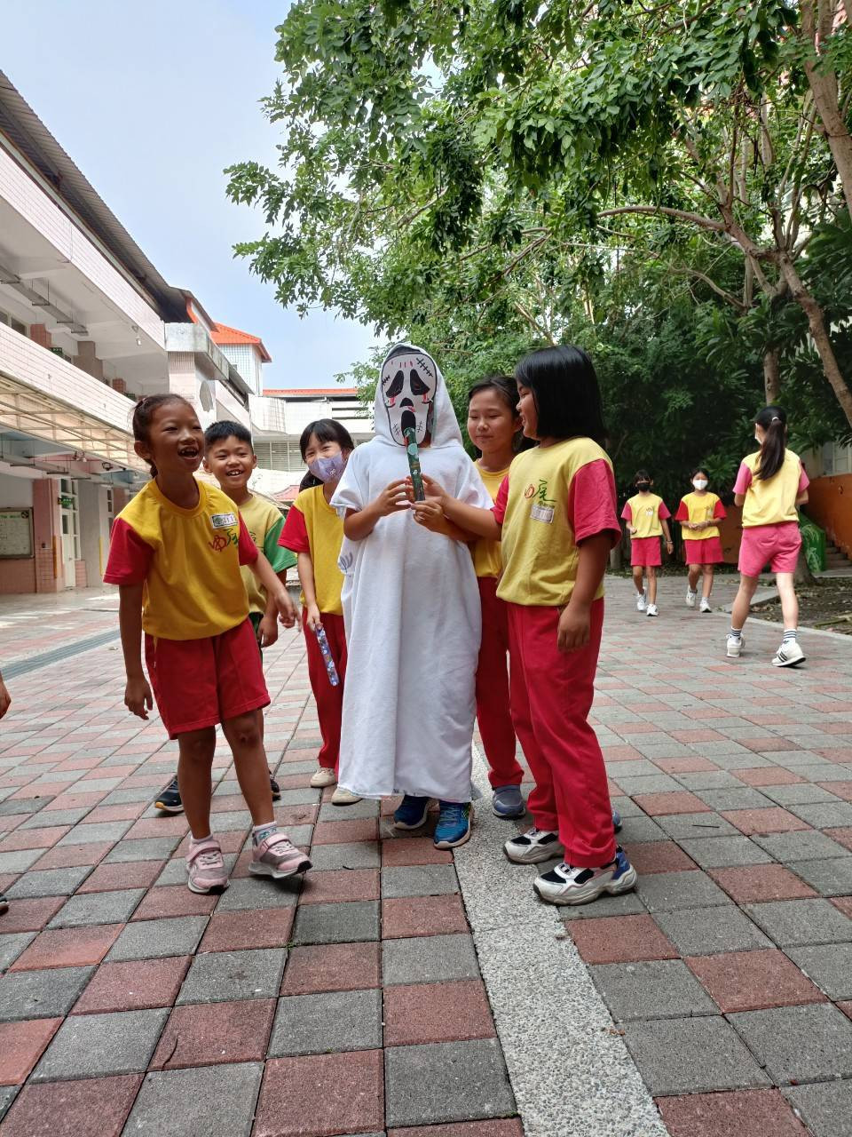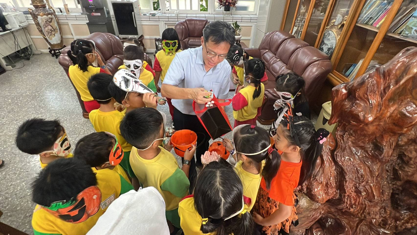 小朋友們穿著萬聖節服裝,成群結隊地來到校長室,對校長說「不給糖就搗蛋!校長準備一些小驚喜,分發給孩子們,讓學生體驗了一個開開心心的萬聖節活動。