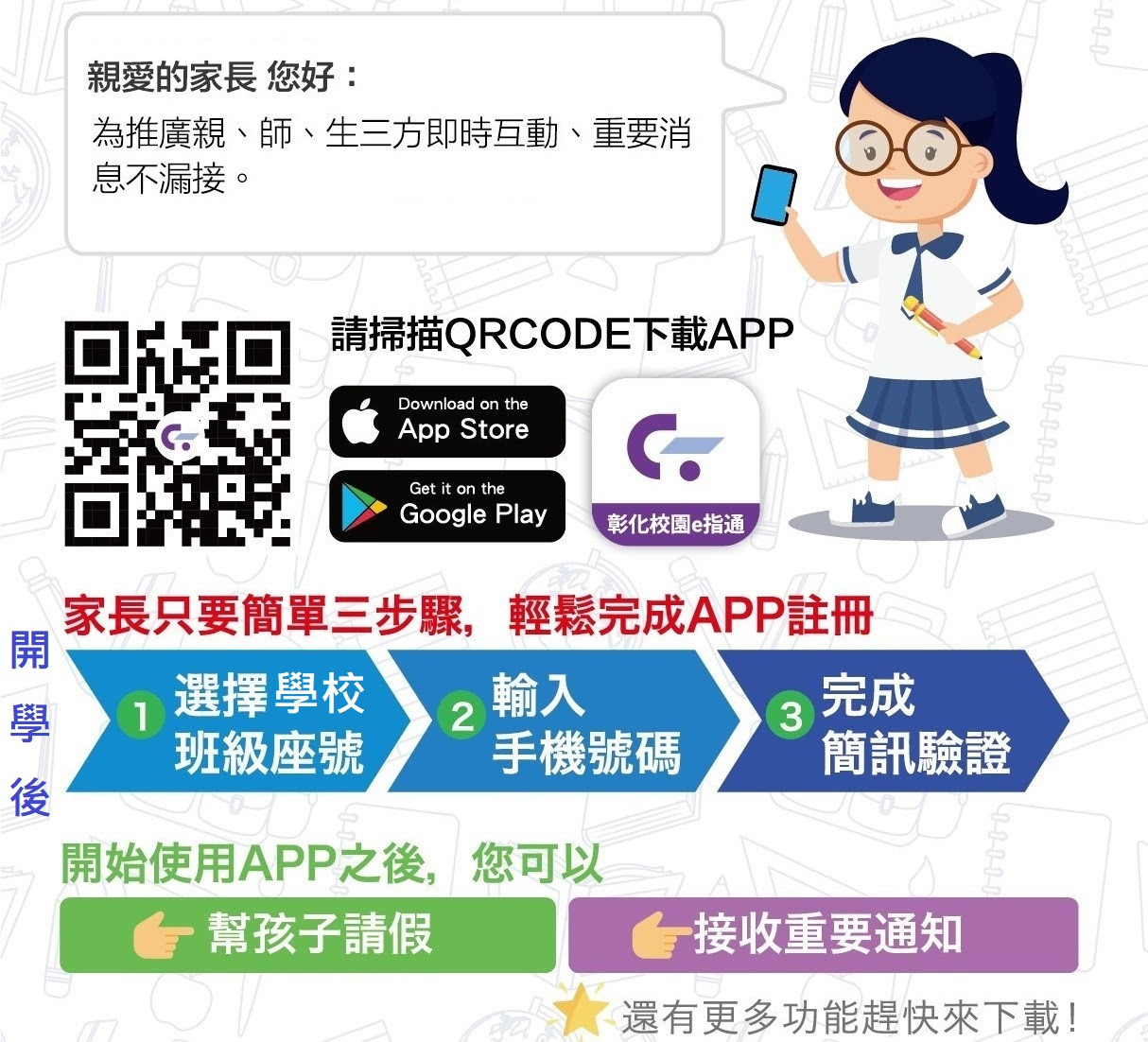 請家長下載運用「彰化校園e指通APP」