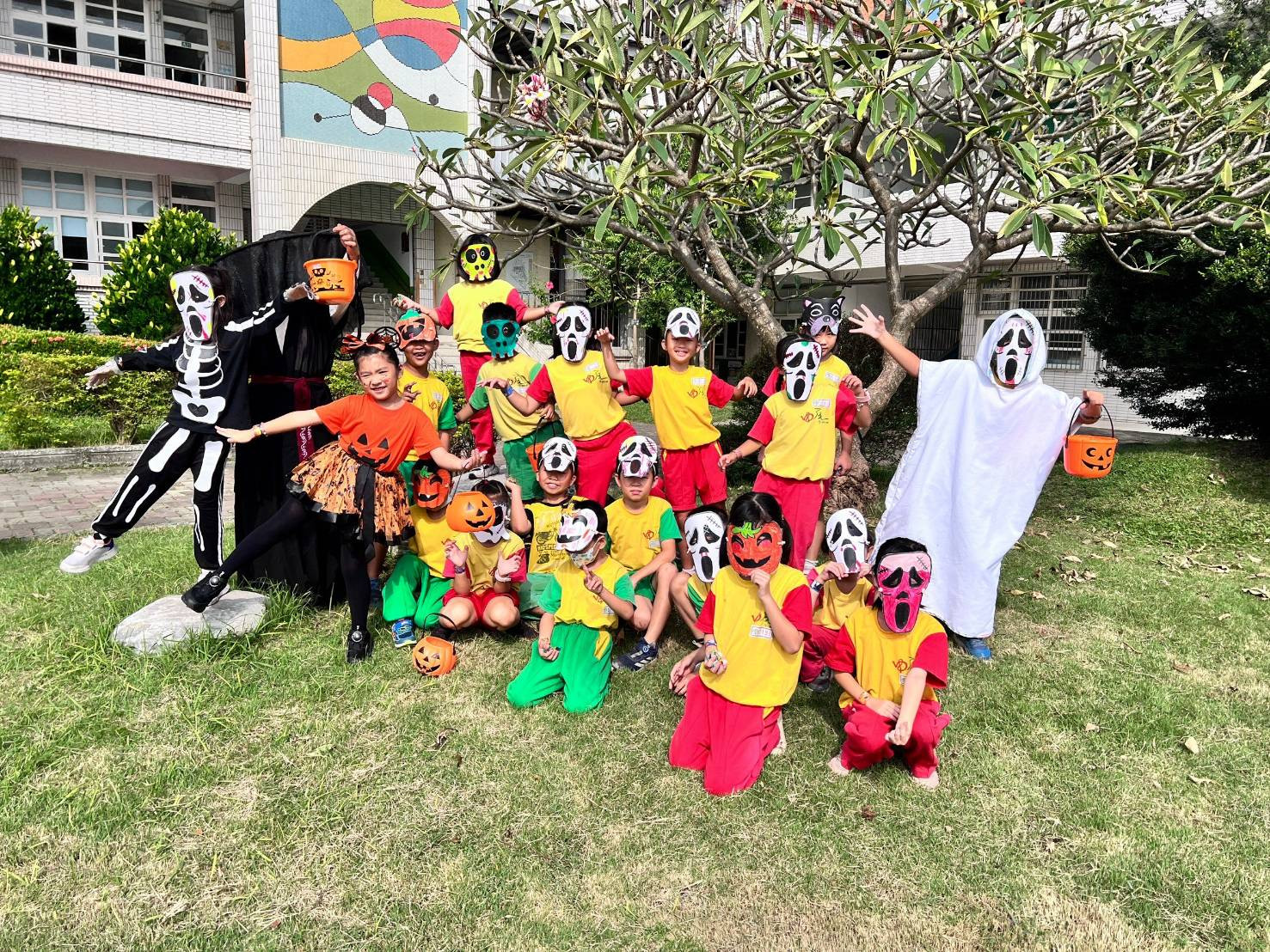 小朋友們穿著萬聖節服裝,成群結隊地來到校長室,對校長說「不給糖就搗蛋!校長準備一些小驚喜,分發給孩子們,讓學生體驗了一個開開心心的萬聖節活動。